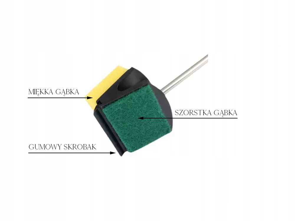 Акваріумна шайба, оснащена наконечником трьох матеріалів, є незамінним інструментом для кожного акваріуміста. Наконечник оснащений м'якою губкою, грубим губкою та еластичною смугою, коли він промиває весь бруд. Ручка довжиною 56 см дозволяє мити навіть великий акваріум, не замочуючи руки.