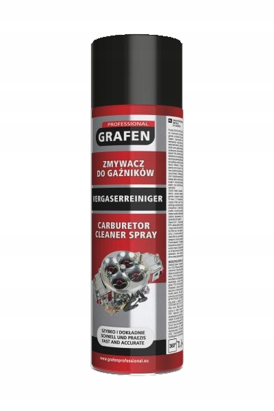 GRAFEN Professional Remover - спрей для очищення деталей карбюратора, дроселів і витратомірів. Містить розчинники, які підвищують ефективність очищення продукту. Завдяки своїм властивостям легко наноситься, завдяки чому глибоко проникає в поверхню, видаляє гумку, осад і лак, які перешкоджають продуктивності. Він не пошкоджує датчики кисню або каталітичні нейтралізатори та забезпечує найбільш ефективне спалювання палива. Крім того, продукт можна наносити під будь-яким кутом (360 градусів).