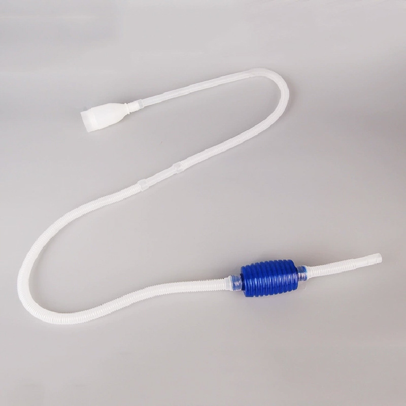 - Пристрій для видалення мулу складається з трубки, виготовленої з прозорого пластику, довгий гофрований шланг, а також насос і спеціальний наконечник із сітчастим фільтром, який запобігає всмоктуванню гравію разом із всмоктуваною водою