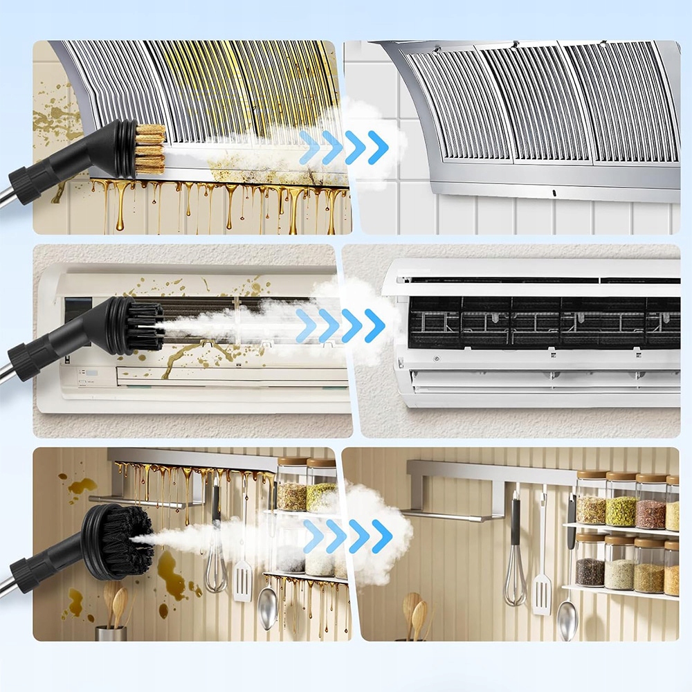 ⏺- wyposażony w wiele szczotek, duża szczotka nadaje się do dużych powierzchni, takich jak ściany, okapy itp; Сталева щітка підходить для печей, горщиків, каструль, посудомийних машин та інших металевих поверхонь; Маленька пензлик підходить для іграшок, меблів, скляних диванів, кахельних поверхонь тощо. Постійні плями на кухні, ванна кімната, на підлозі, килим, машина. Дозволяє легко досягти важкодоступних куточків та ретельного очищення.