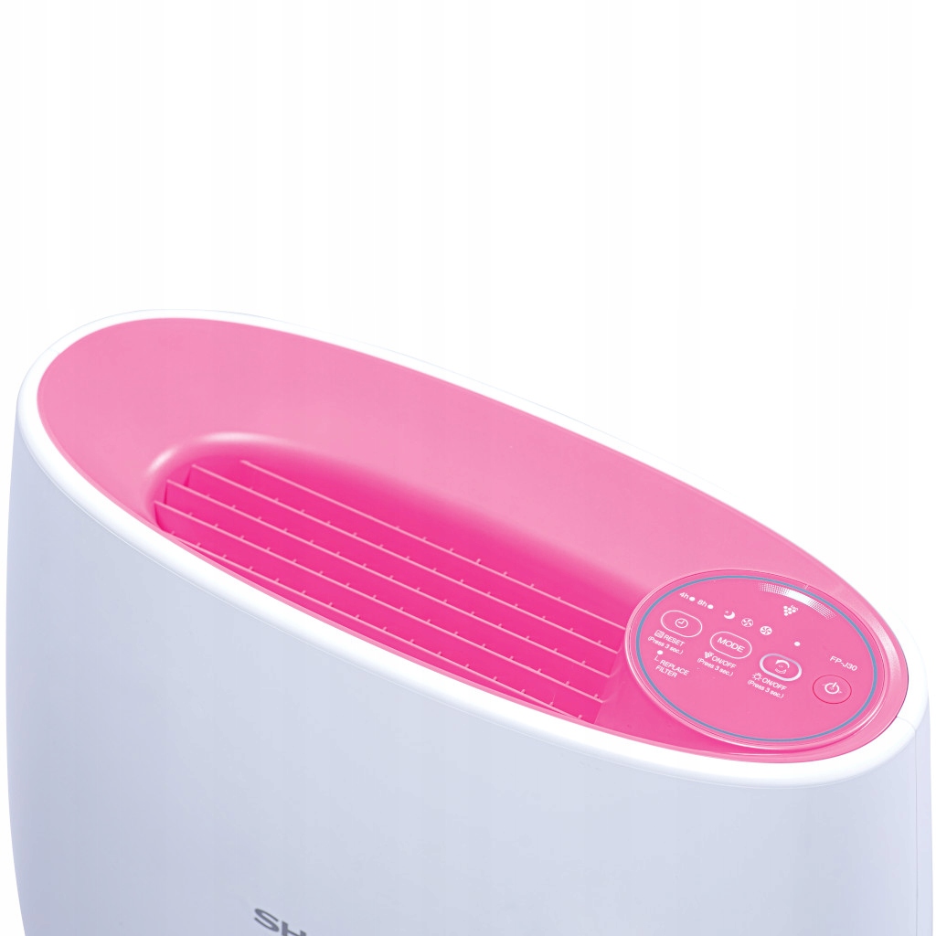 Він має приємну для ока форму та сніго- білого кольору, а панель керування та витяжка рожевого кольору. Він оснащений технологією Plasmacluster, яка дозволяє використовувати режим Clean Ion Shower. Цей компактний очищувач повітря пропонує 3 режими продуктивності: MAX (180 м3/год), MID (120 м3/год) і SLEEP (60 м3/год), що є тихим режимом (23 дБ). Корисна функція Timer Off - програмування часу роботи очищувача повітря. Ви можете встановити час відключення через 4 або 8 годин.