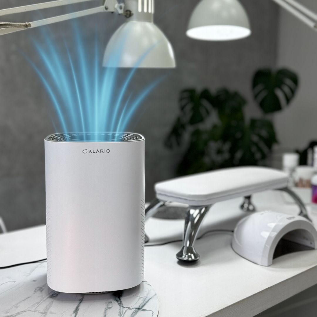 KLARIO ідеально підходить для салонів краси, манікюру та нігтів, де в повітрі присутній пил від фрезерів, лаків і косметики. Ефективно видаляє частинки, запахи та хімічні речовини, покращуючи комфорт роботи та якість повітря.