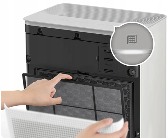 Пристрій легко залишається чистим, що означає підтримку максимальної ефективності. Зніміть передню кришку, щоб зняти фільтри під ним. Регулярно мийте попередній філтер під проточною водою. Інші фільтри повинні бути замінені, коли діод на пристрої світить або ви отримуєте сповіщення в програмі.