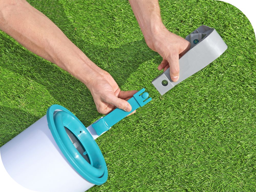 Просто зачепіть його за внутрішню стінку басейну (біля входу всмоктування), підключіть до фільтруючого насоса з мінімальною продуктивністю 2006 л/год і більшеі дивіться, як він запускається автоматично збирати бруд.