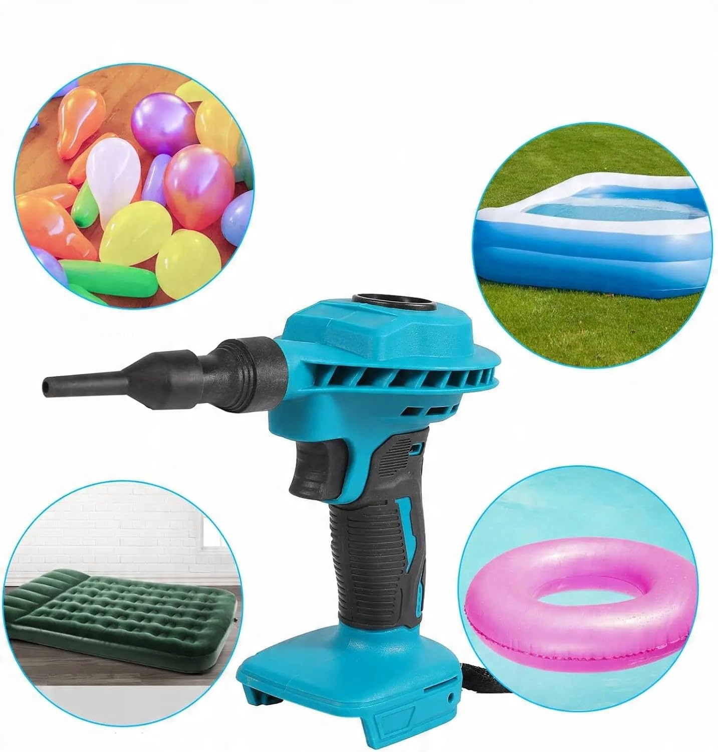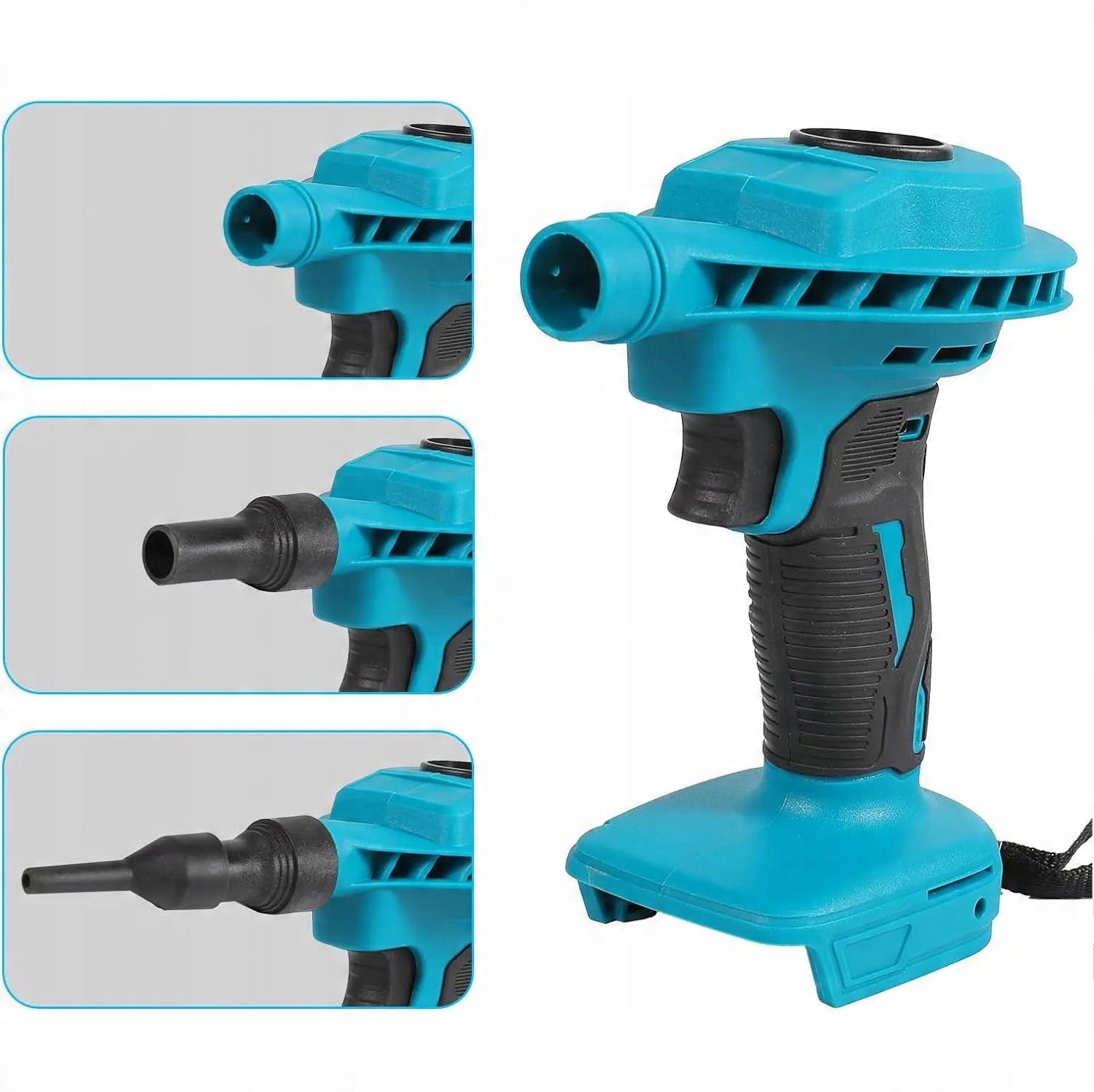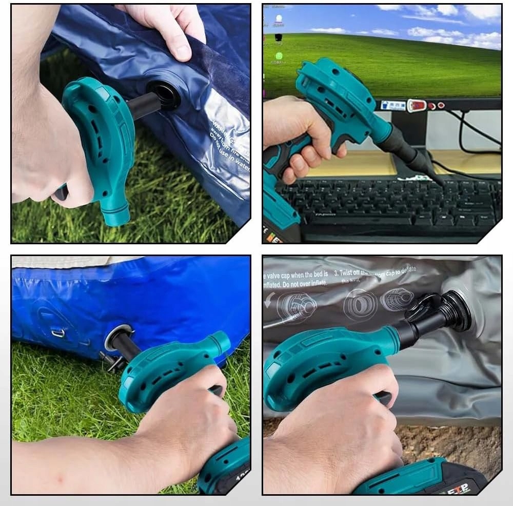 1. Цей бездротовий вентилятор може бути використаний для очищення майстерні, зняття пилу та отвору для якорів та надуення іграшок для басейну у вихідні дні. Насадку можна швидко і легко замінити залежно від використання. Насадка можна замінити без використання інструментів. Насадка має широкий спектр застосувань. Використовуючи чистого мідного ядра, всмоктування є сильним, а максимальна швидкість вітру може досягти 200 м/с.