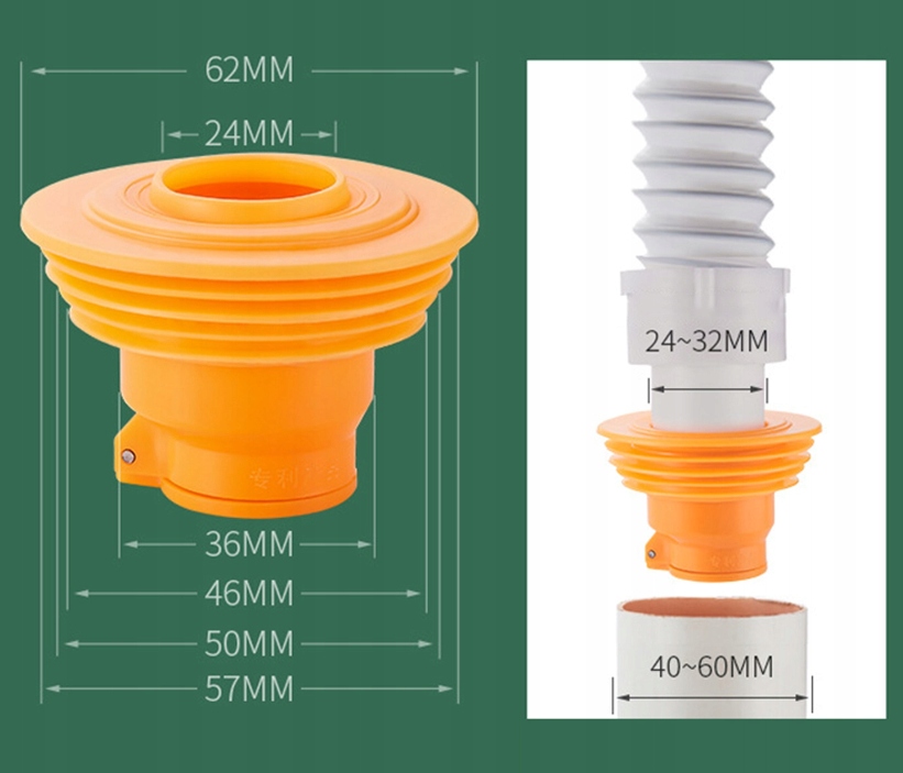 Діаметр змінного діаметра, верхня частина може бути з'єднана з трубами діаметром 24-32 мм , нижня частина може бути з'єднана з трубами діаметром 40-60 мм .