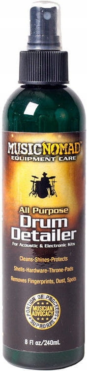 Drum Detailer дозволить вам ретельно очистити всю барабанну установку та обладнання. Відновлює блиск оздоблення і плит, а також додатково захищає їх від накопичення пилу. Спеціальна формула робить продукт придатним для використання також на матових поверхнях.