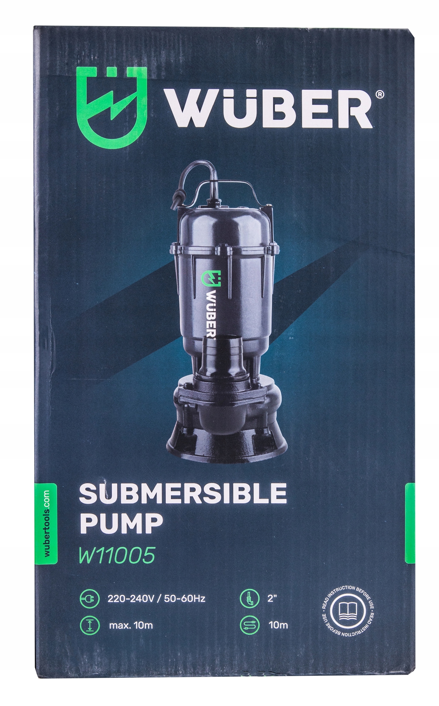 Занурювальний насос Wuber W11004 виготовлено з високоякісних матеріалів, що робить його повністю герметичним і повністю занурюваним. Він був ущільнений подвійним сальником, що відокремлює воду від електрики насоса. Він оснащений надійним двигуном потужністю 2500 Вт, завдяки якому пристрій досягає швидкості 3000 об/хв, що в перекладі означає ефективність 18 000 л/год. Він може легко підняти потік води на висоту до 10 м. Вбудований чавунний лопатевий подрібнювач дозволяє безпечно видаляти всі органічні відходи, такі як фекалії та туалетний папір або залишки їжі. Насос оснащений конденсатором, який забезпечує плавний пуск насоса, завдяки чому двигун менше піддається пошкодженням, що істотно впливає на термін його служби. До насоса можна підключити шланг діаметром 2'' мм, завдяки чому пристрій здатний перекачувати велику кількість води. Кабель живлення довжиною 10 м дозволяє використовувати насос навіть у місцях, віддалених від джерела живлення, без використання подовжувача. З’єднувач FAST-FIX із зовнішнім різьбленням, прикріпленим до насоса, дозволяє негайно встановити напірний шланг із FAST-FIX на кінці.