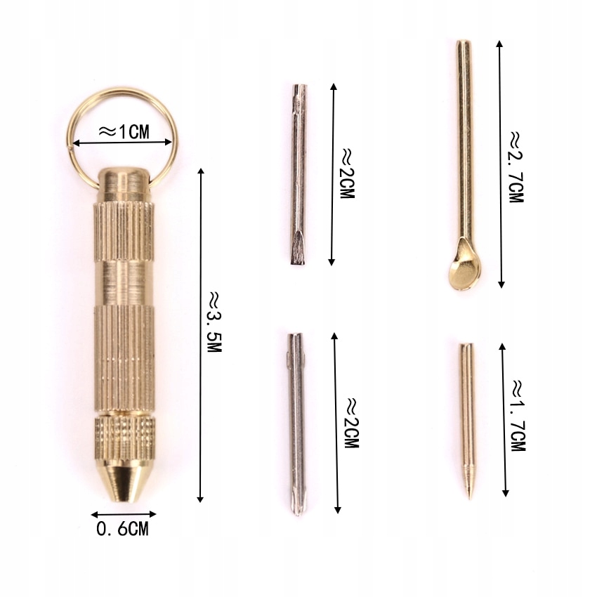 - Міні-інструмент, який ви можете завжди мати з собою завдяки кріпленню за допомогою маленького кільця, можна прикріпити цей невеликий набір, наприклад, для ключів, набір включає корисні інструменти, такі як хрестова та плоска викрутки для точної роботи, шило та ложка, завдяки яким ми подбаємо про гігієну нашого вуха. li>
