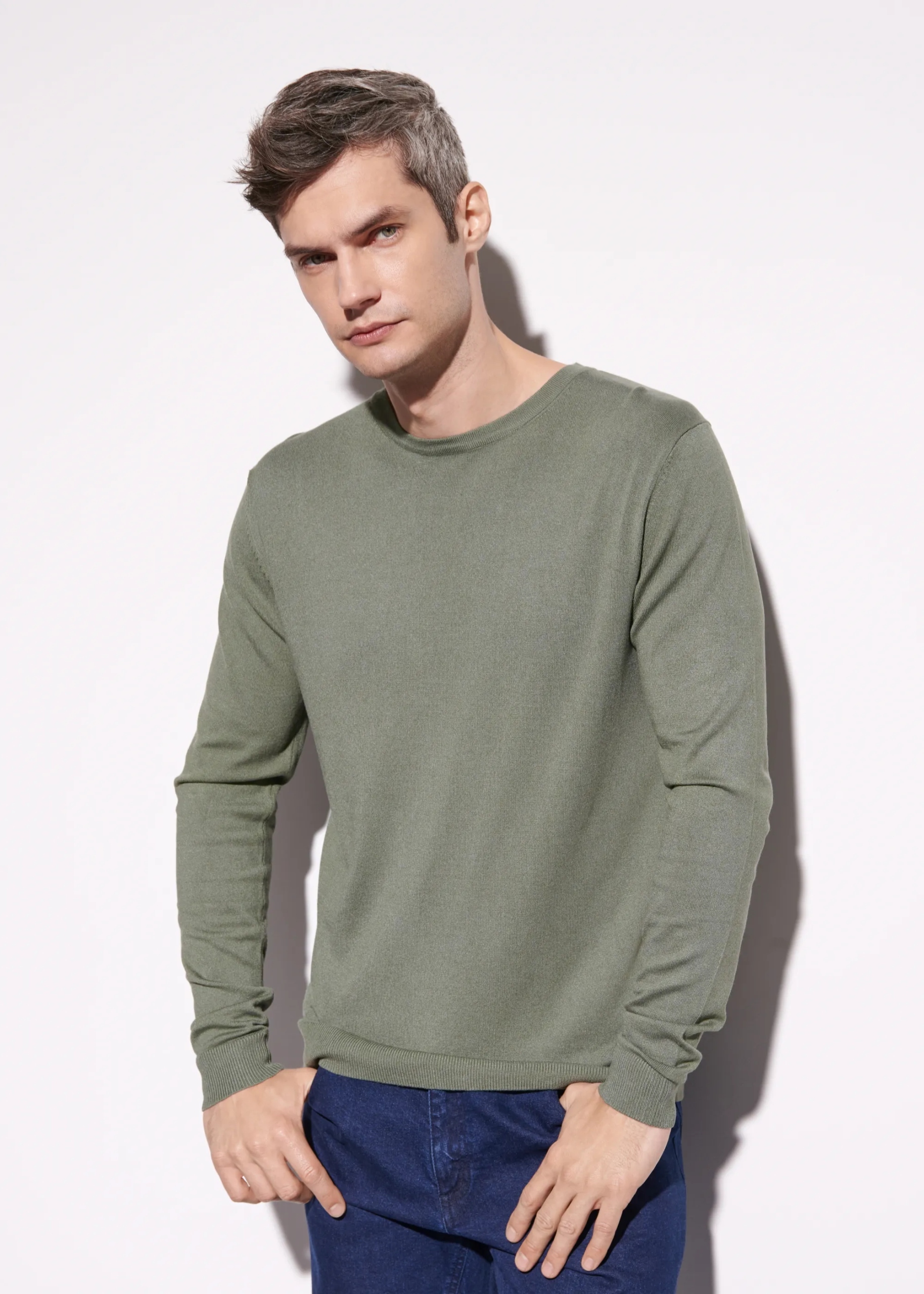 Чоловічий светр зеленого відтінку з віскози в поєднанні з нейлоном. Модель універсального крою, ідеально підходить як окремо, так і поверх сорочки. Добре підійде дляповсякденного стилю.