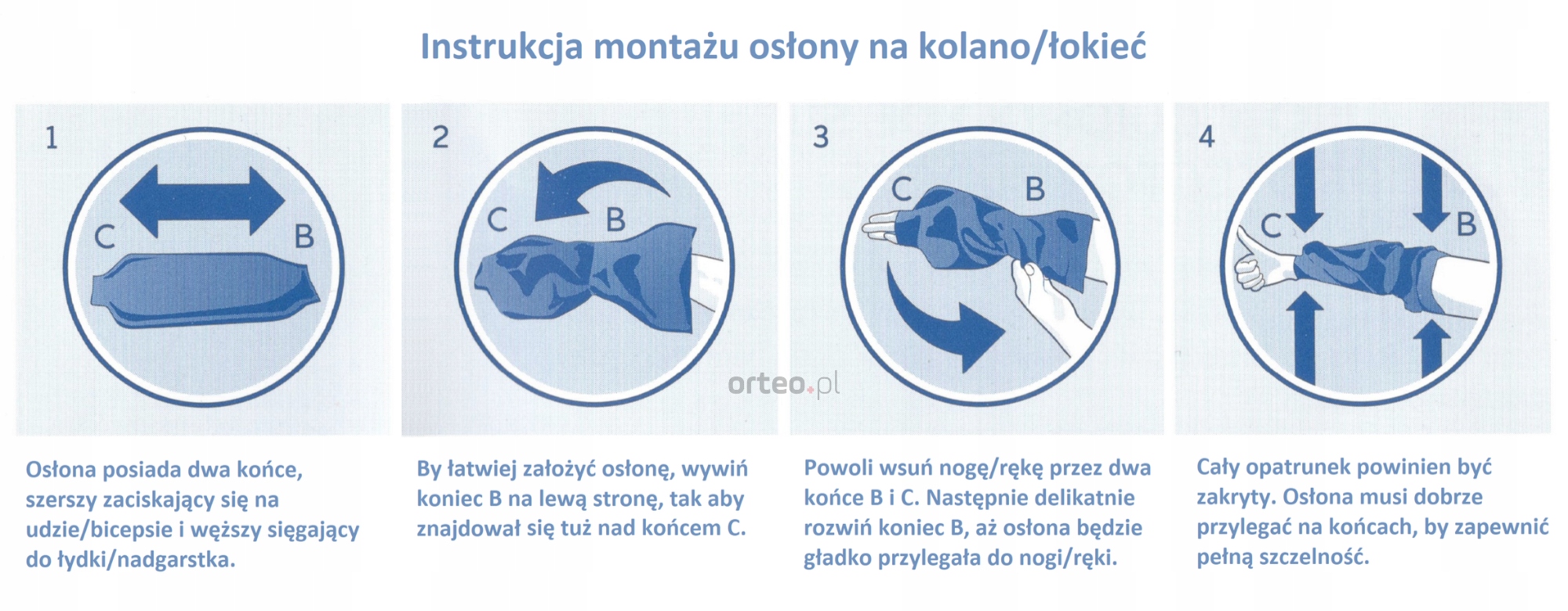 Щоб вибрати відповідний розмір, виміряйте довжину гіпсу (перев'язки) (A) та окружність приблизно 2,5 см перед (C) і за ним (B). Як правило, розміри також відповідають віку (дитяча модель), хоча це значення не повинно бути єдиним фактором. Точні вимірювання забезпечують вибір ідеального покриття та гарантують його ефективність.