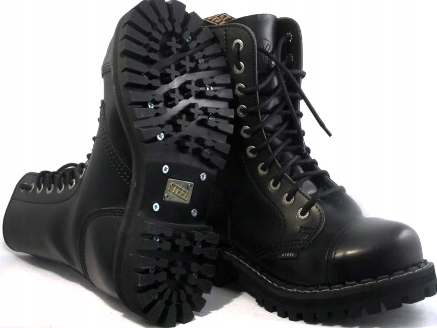 OCIEPLANE Wysokie Glany STEEL SKÓRA Czarne CIEPŁE Gwarancja