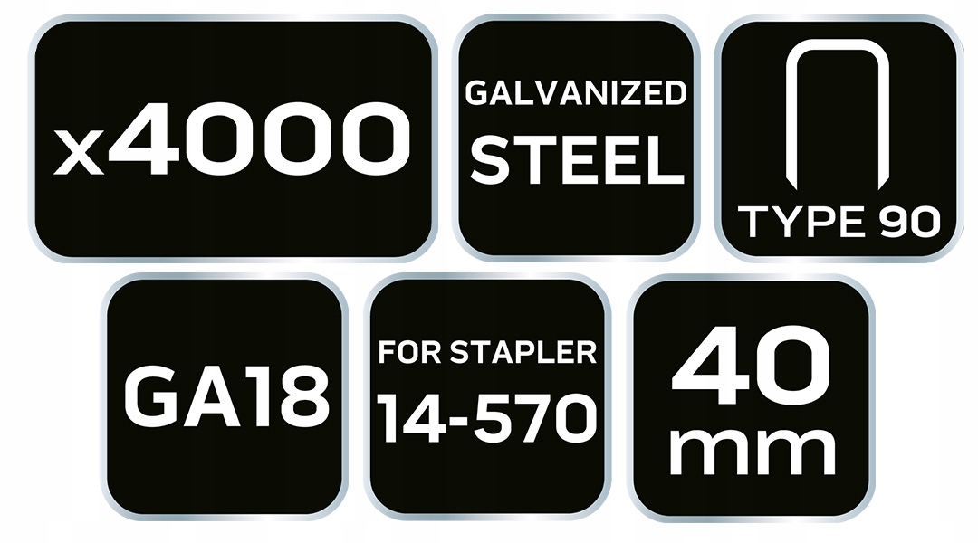 оцинковані скоби для пневматичного степлера (14-570), GA18, тип 90 (4K), довжина 40 мм, 4000 штук 14-631 Neo-скоби, виготовлені зі сталі, оцинковані, корозійні. Вони призначені для пневматичного штаплера 14-570 neo. Вони характеризуються довжиною 40 мм, тип 90 (4 к), GA18. Їх пропонують у наборі 4000 штук. Степла, рекомендовані для всіх видів роботи з пневматичними штаплерами. Буде придатним для професійних програм.