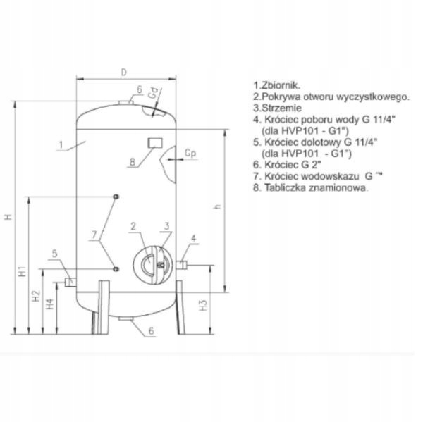 - Додатково в циліндричній частині є лаз (отвір для очищення) Резервуар має обладнання, яке складається з: - манометра (показує тиск всередині резервуара) - аератора (дає можливість закачувати повітря в резервуар ) - водомірна трубка (визначає рівень води в резервуарі). бак) - необхідні ущільнювачі та арматура для установки в прилад Напірні баки мають широке застосування, їх можна використовувати для забезпечення водою житлових і господарських будівель з : - власні водозабори - мілкі водоносні горизонти з камед - пробурені свердловини - резервуари - ставки - входить в комплект гідрофор як водно-повітряний резервуар. Крім того, вони корисні для живлення фонтанів, літніх будинків чи садів Переваги: - 2 роки служби - Безпека використання - Довгий термін служби - Нейтральна при контакті з питною водою - 100% польське виробництво - Повний технічний нагляд та гарантія та пост. -гарантійне обслуговування - простота і швидкість монтажу - високий рівень якості гідрофорної ємності