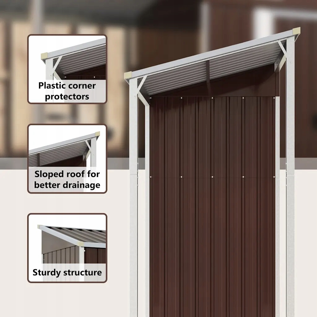 Садовий сарай, виготовлений з оцинкованої сталі з розширеним дахом, коричневим, 277x107x157/ 181 см