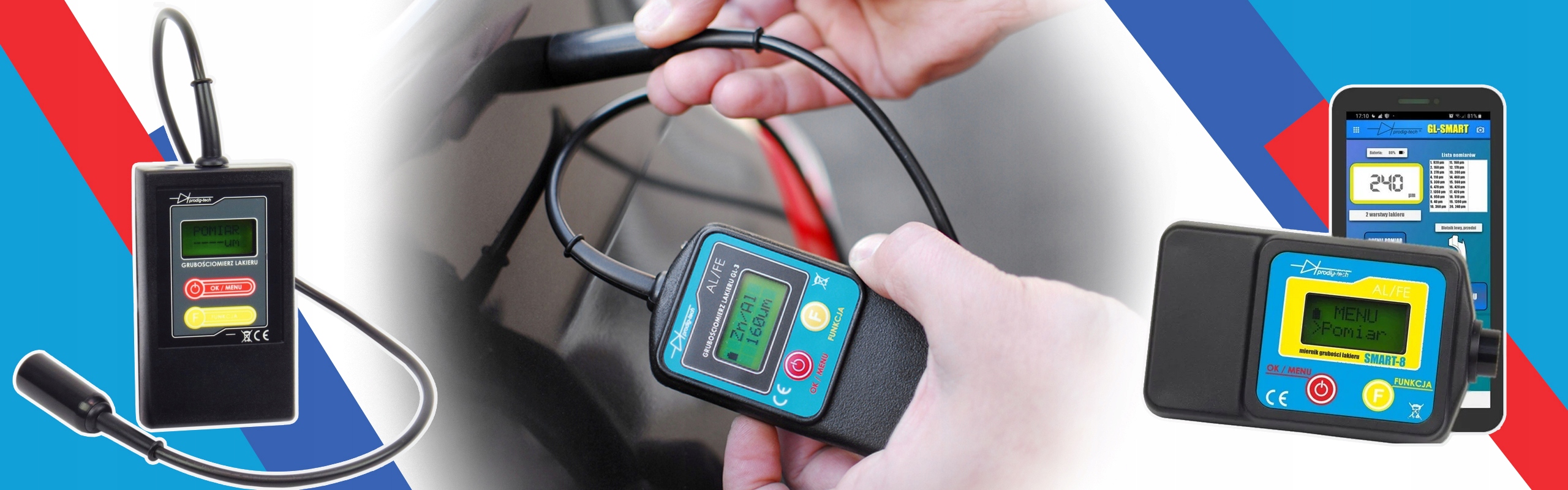 Основний вимірювальний прилад для вимірювання товщини фарби на автомобільній сталі та оцинкованих листах. Має зручний щуп на кабелі.