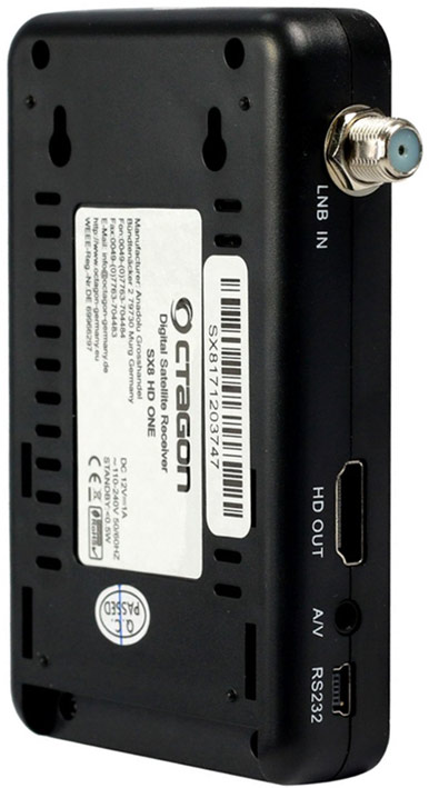 Octagon SX8 HD One характеризується невеликими розмірами 113 x 70 x 20 мм і може кріпитися на стіну. Блок живлення 12 В також застосовний для туризму. Рекомендовано для ентузіастів TVSAT - він має DX - Blindscan і Multistream можливості в машині: