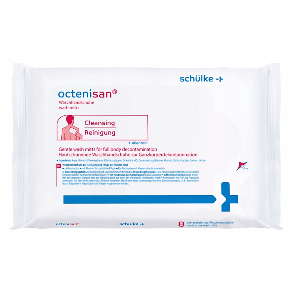Рукавички для прання Octenisan особливо рекомендовані людям знерухомленим, лежачим, пацієнтам у відділеннях інтенсивної терапії та інфекційних відділеннях. Ідеально підходить для миття та знезараження всього тіла при інфекціях MDRO, а також для догляду за шкірою та волоссям перед процедурами.