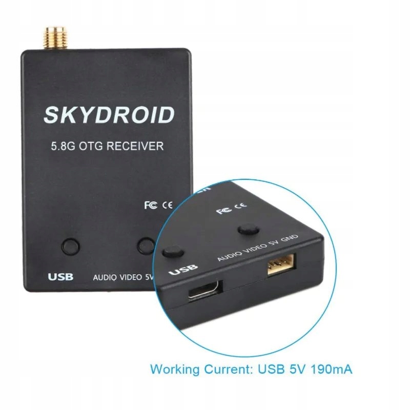 Невеликий, дуже простий у використанні приймач, який працює в діапазоні 5,8 ГГц на 150 каналах. Він має міні-порт USB, щоб ми могли відображати зображення на телефоні чи планшеті. Дуже корисний пристрій, завдяки якому ми можемо запускати FPV польоти за невелику вартість. Приймач також має можливість відображати зображення через VR.