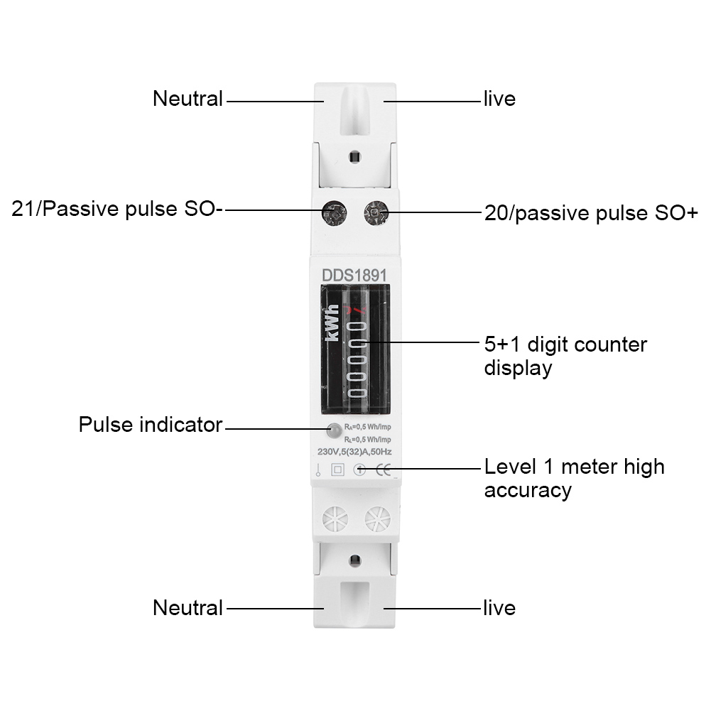 - Метра в технічних вимогах постачання Subnie з однофазним класом 1, визначеним Міжнародним стандартом IEC62053-21. Він може робити споживання активного струму 50 Гц або 60 Гц безпосередньо з однієї фазової сітки змінного струму і може показувати споживання енергії в реєстрі імпульсних імпульсів передміхурової залози.