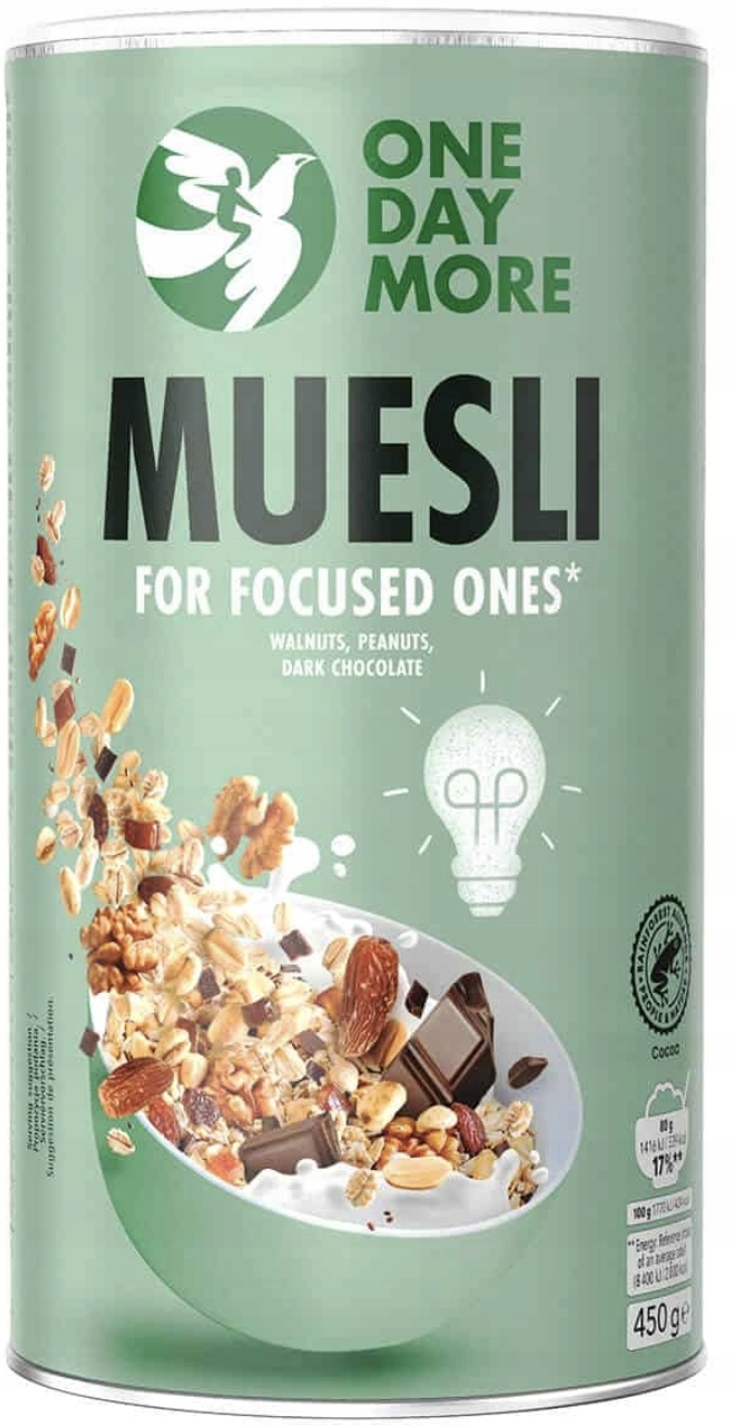 Мюслі OneDayMore For Focused Ones (горіхи, темний шоколад) тюбик 450 г
