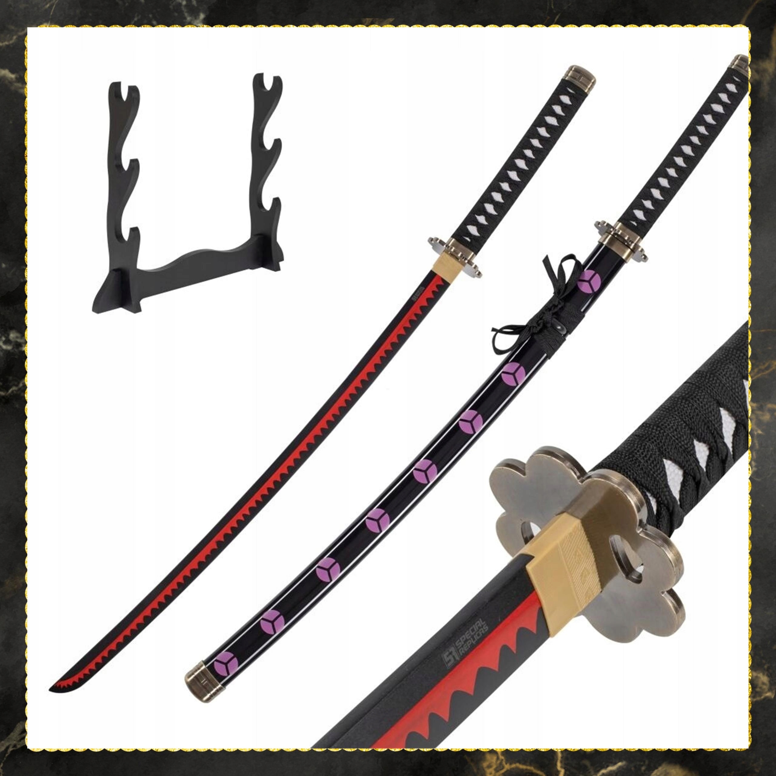 ❇s Katan для шанувальників аніме roronoa Zoro, що містить три мечі та стенд, є великою пропозицією для кожної лову цього серії. Мечі виготовлені з бамбукової деревини, а піхву та ліжко з твердого пластику, що гарантує їх міцність та міцність.