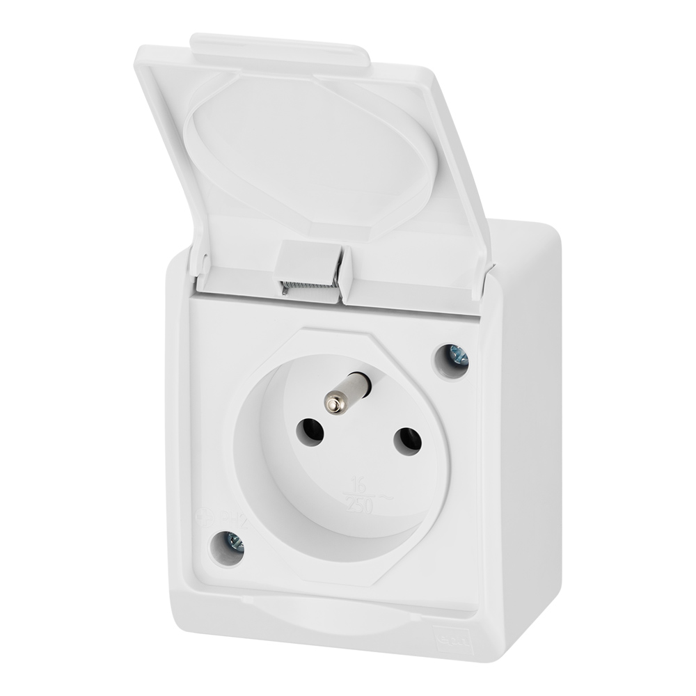 Одинарна накладна герметична біла розетка EPN