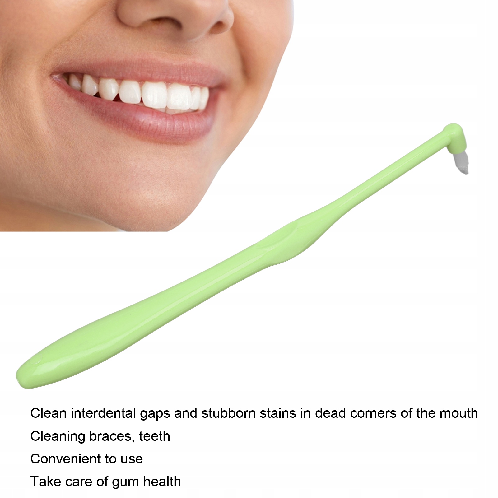 4. Амовлені плями: ортодонтична зубна щітка може очистити мертві плями в роті, видалити вперті плями та зробити зуби чистішими.