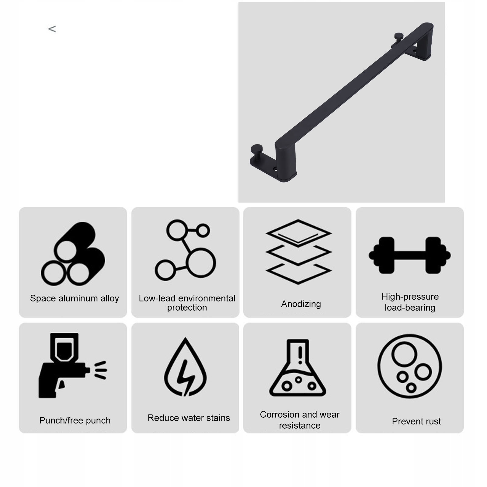 1. Алюмінієвий сплав: Ця вішалка рушника виготовлена з алюмінієвого сплаву, подряпина, анти -корозійна, довговічна та довговічна.