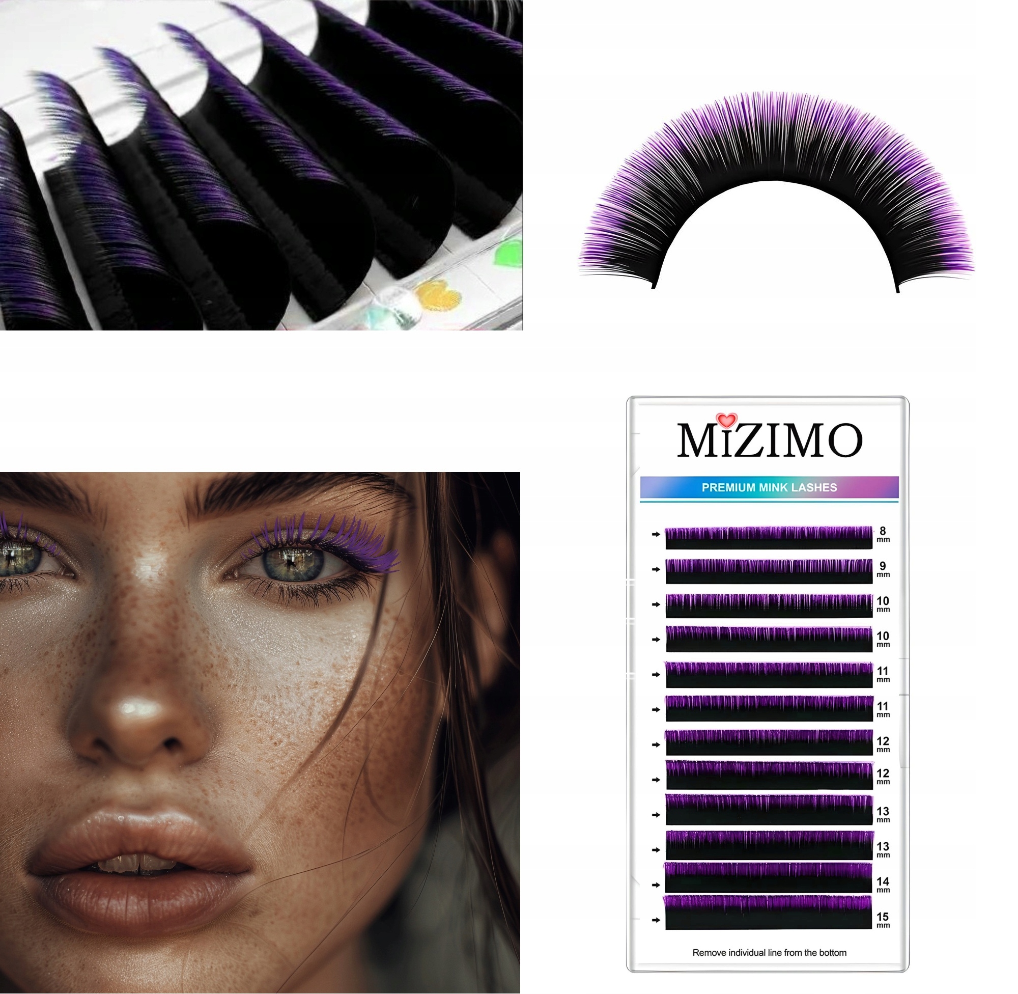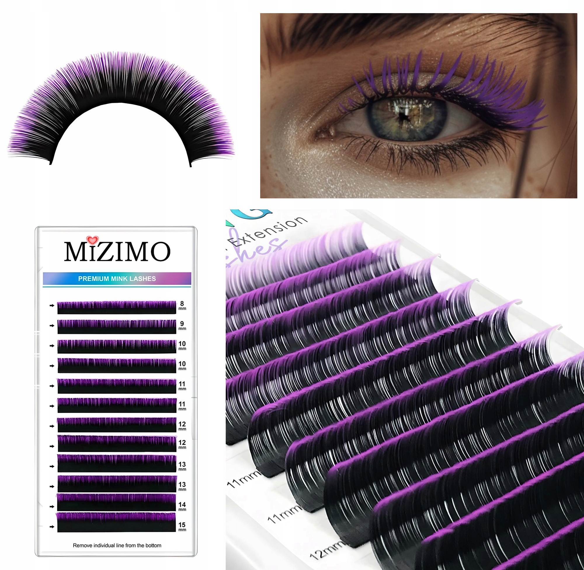 Одиничні барвисті вії 8-15 мм, поворот D, 12 Омбре-фіолетових смуг омбре