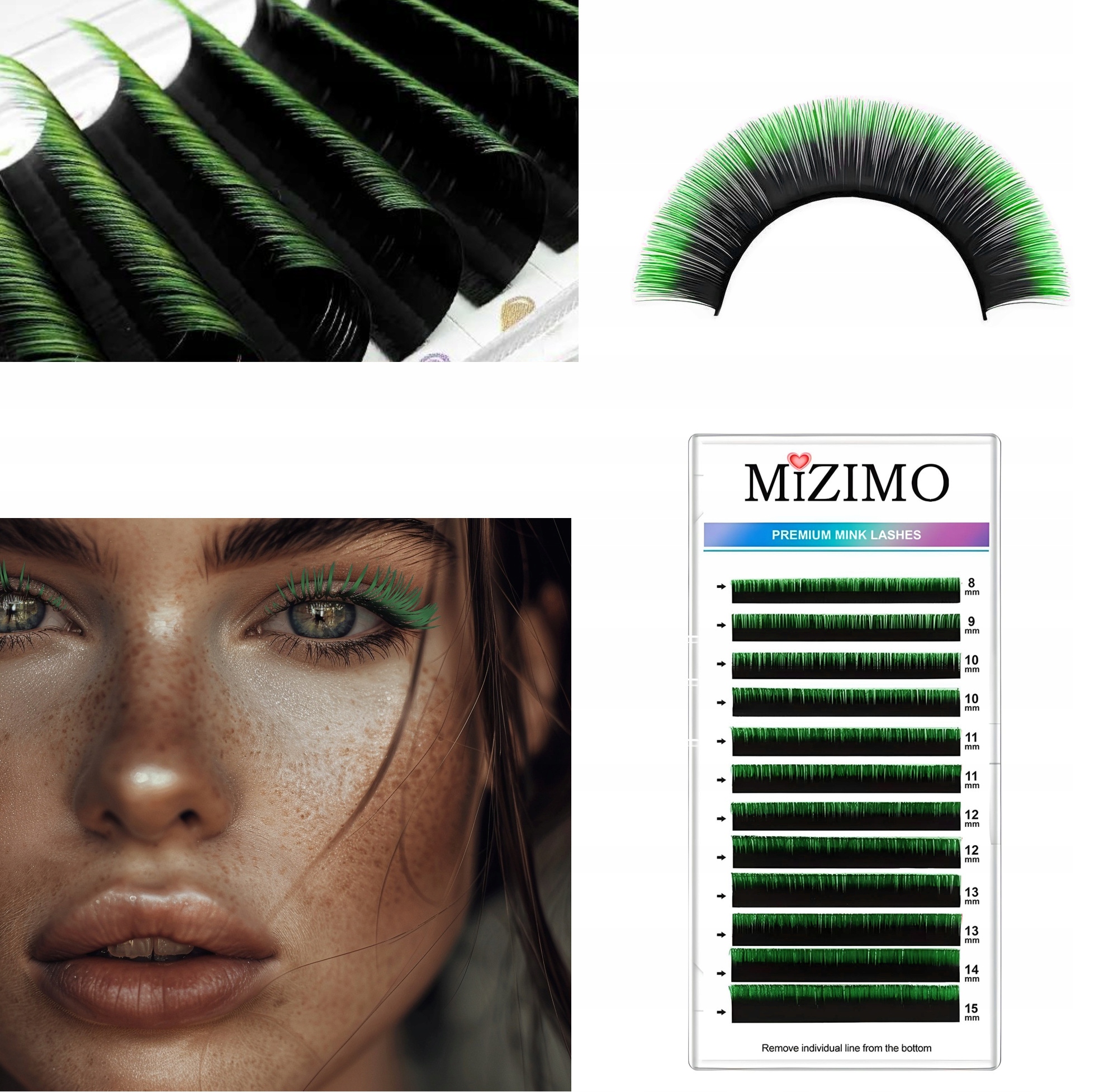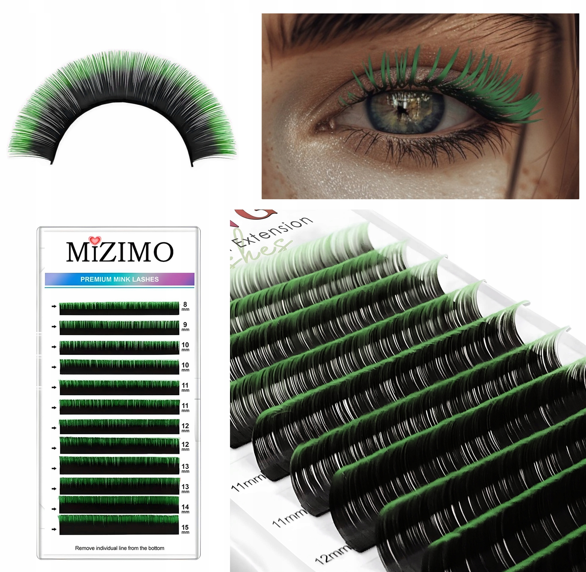 Одиничні барвисті вії 8-15 мм, повороти D, 12 омбре-зелених смуг омбре