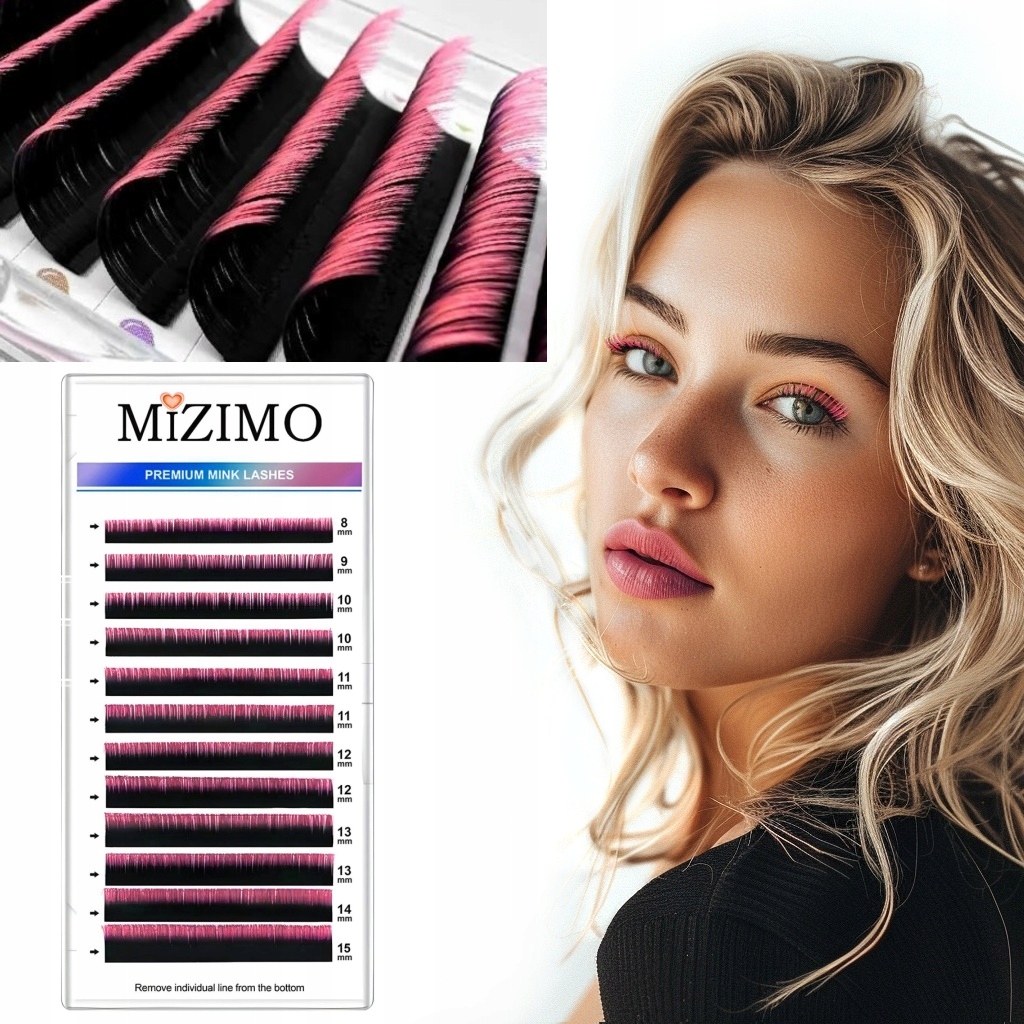 Одиничні вії омбре 8-15 мм, поворот, 12 рожевих смуг