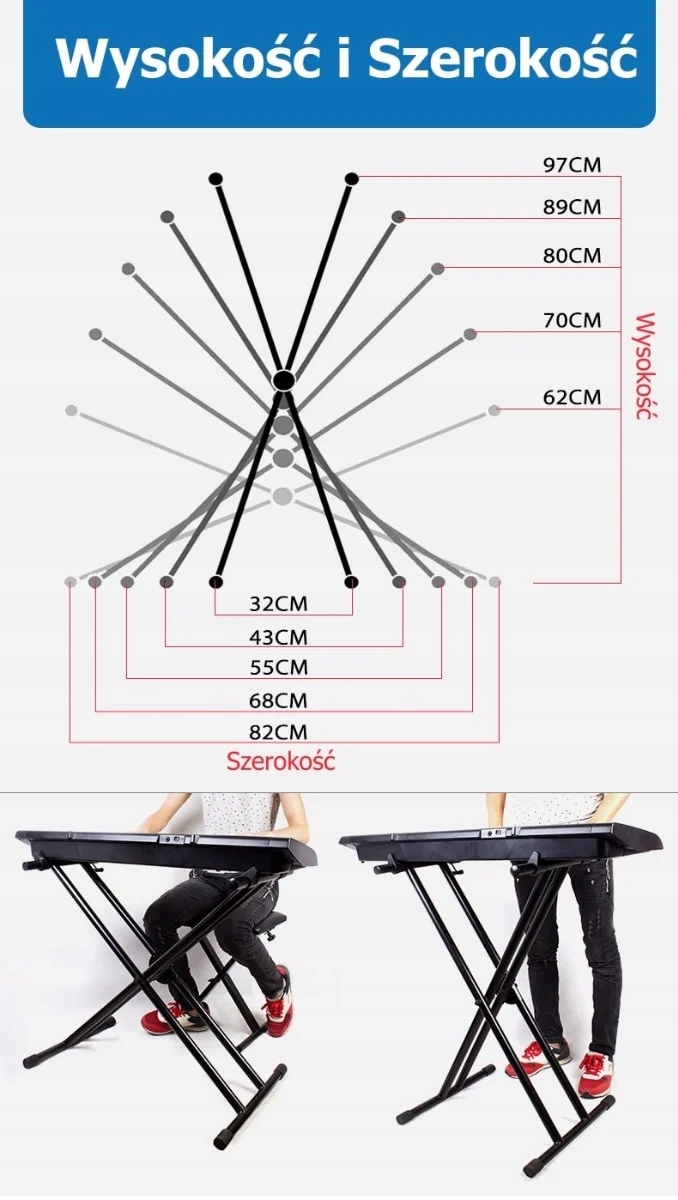 - Регульована ширина рами залежно від налаштування висоти: від 32 см до 82 см