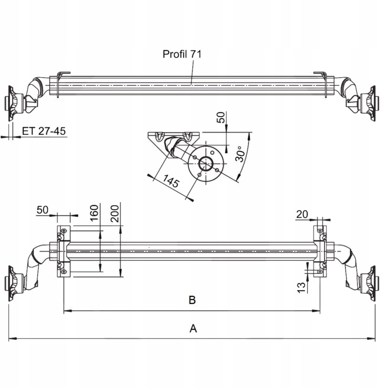 модель: 700 тип осі: 700-5. Довжина важеля, що розмахується: 145 мм колеса з'єднання: 100 x 4, включаючи колеса (M12 x 1,5). 57 мм відпустка -гальванічне тіло осі. Діапазон доставки: вільні колеса