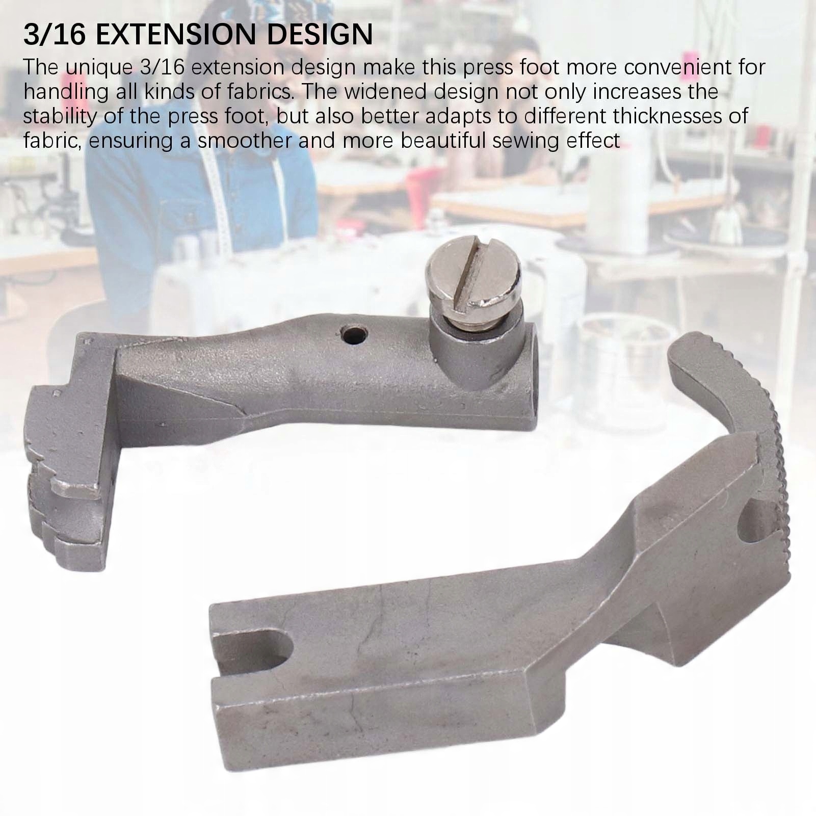 4. Дизайн розширення 3/16: унікальний дизайн 3/16 до -уважності робить цей колонтитул більш зручним у ковзанні всіх видів тканин. Розширений дизайн не тільки збільшує стабільність стопи, але й краще адаптується до різної товщини матеріалу, забезпечуючи розмову та більш красивий ефект шиття