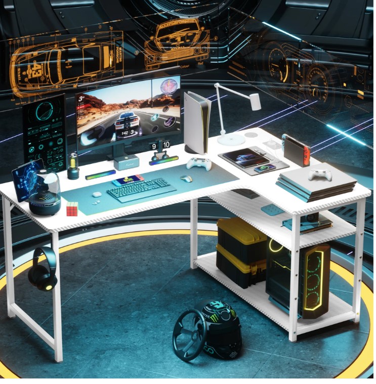 ODK Stolik gamingowy , biurko narożne, białe, 148 x 120 cm