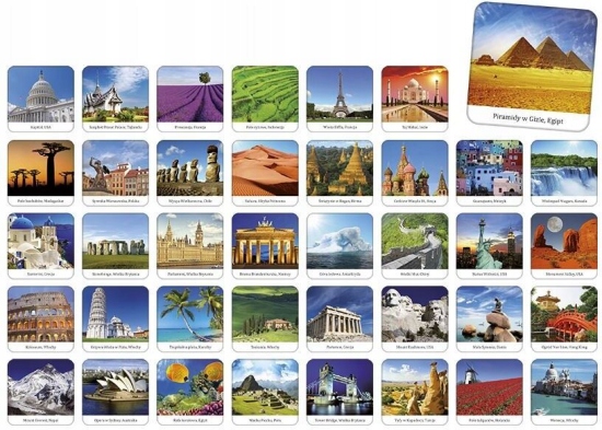 Гра ADAMIGO MEMORY — ідеальна вечіркова гра для всіх, хто любить веселитися у веселій атмосфері. Розвиває пам'ять, вчить концентрації, зближує сім'ю і робить вільний час приємнішим. Завдяки цій грі ми миттєво перенесемося в найнезвичайніші місця, повні вражаючих пам’яток і природних чудес. Це чудовий спосіб пізнавати світ разом із дитиною.