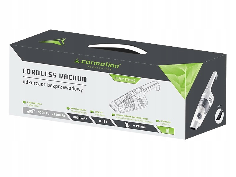 Odkurzacz bezprzewodowy 5000 Pa - 7500 Pa, z filtrem HEPA, czarny