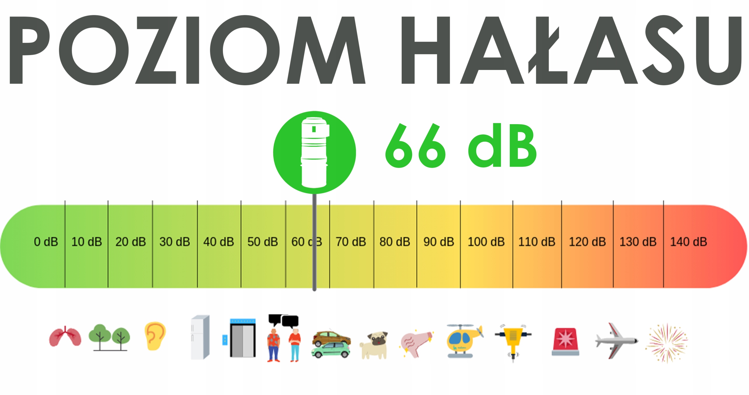 Ще один важливий параметр, який впливає на комфорт користування центральними пилососами, - це створюваний шум. Пристрій Cyclo Vac H725 оснащений найсучаснішою турбіною, яка, крім чудових параметрів всмоктування, також забезпечує низький рівень шуму, в даному випадку лише 66 дБ. Такий хороший результат можливий завдяки використанню системи AntiVibraSound, яка усуває вібрацію двигуна, яка є причиною шуму.