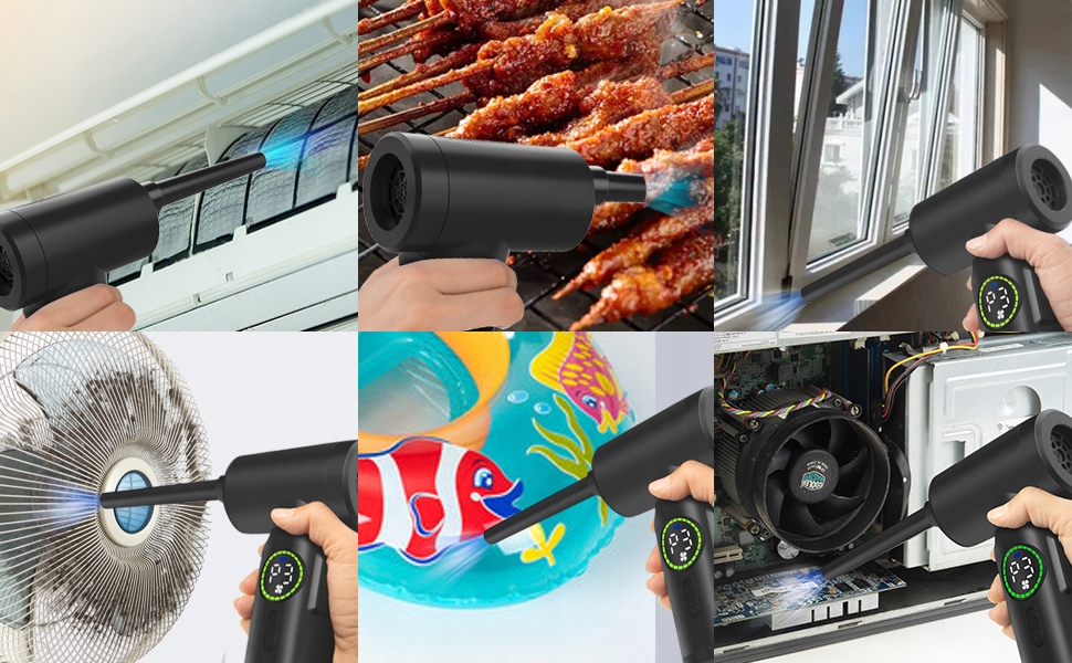 ☑️ 【Багатофункціональний бездротовий пилосос】: від клавіатури до корпусу комп’ютера, до кондиціонер і, нарешті, диван, пилозбірник повітря може ідеально очистити там, де вам це потрібно. Електричний пилозбірник оснащений додатковими 4 насадками і 4 щітками, що дозволяє проводити багаторазове очищення. Він може не лише очистити пил, але й надути кільця для плавання, м’ячі для йоги, надувні матраци тощо. Компактний дизайн легко носити.