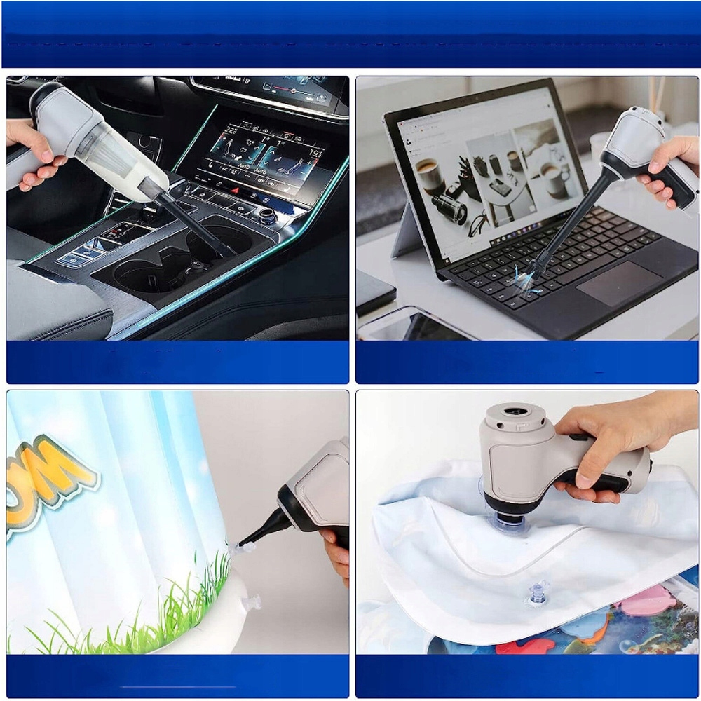 Цей автомобільний пилосос постачається з 4 різними насадками, які краще відповідають вашим потребам у прибиранні, забезпечуючи глибоке очищення компресійного мішка / Надувне кільце для плавання/повітродувка та пилосос 4 в 1.