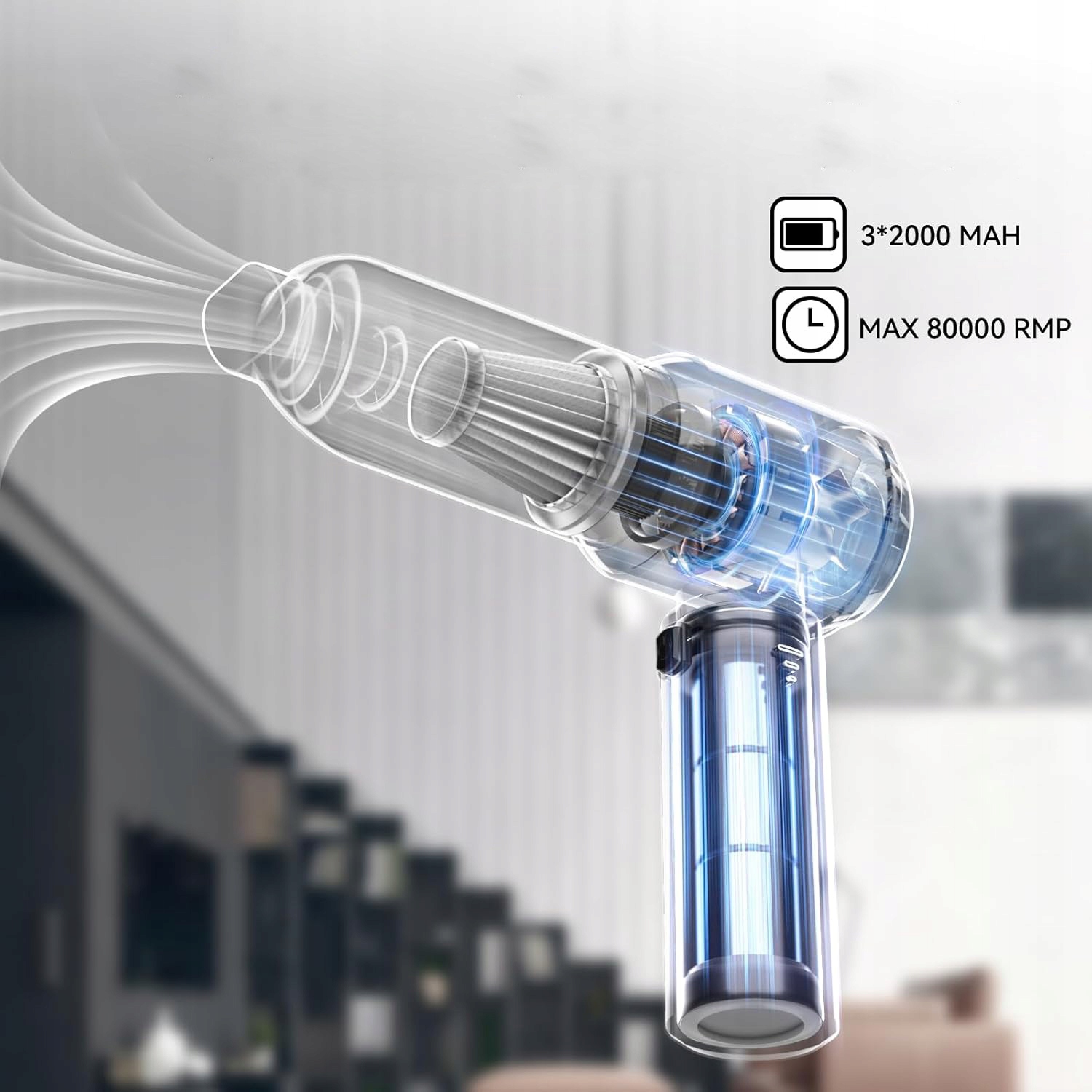 Сильний вакуумний очищувач автомобіля 16000PA: Десять приймачів бездротового автомобіля оснащені вдосконаленим, швидким двигуном безщів, високою продуктивністю. 3 Регульовані режими живлення: 6000PA, 12000PA та 16000PA. Завдяки високій силорі всмоктування, цей автомобільний живлення дозволяє пошкодити волосся, крихти, транспортні засоби та пісок, прихований у автокріслі або дивані.