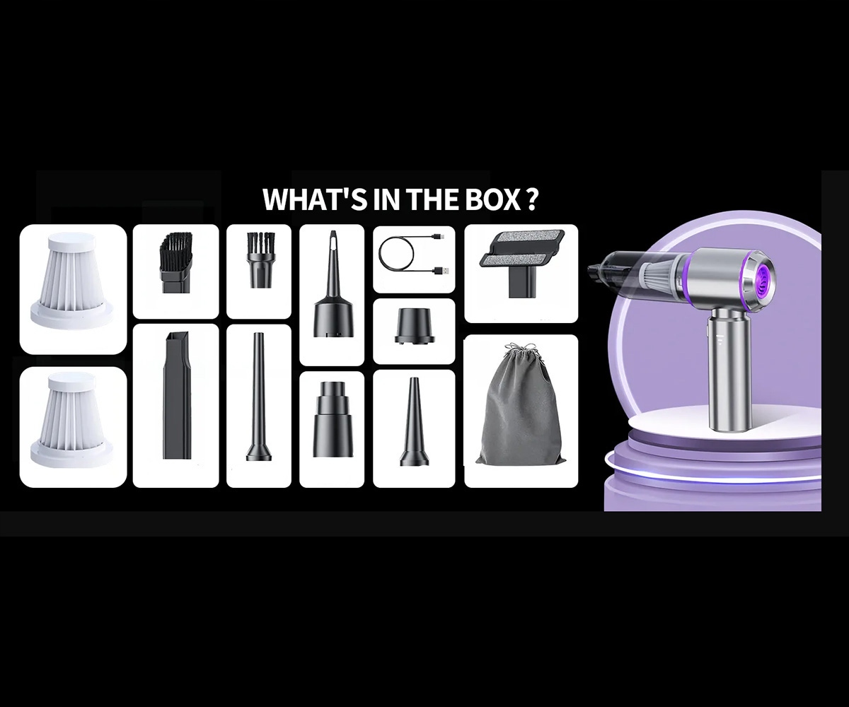 7 Функціональні аксесуари: Багатофункціональні аксесуари для всіх ваших потреб. Довга насадка, щітка і довга насадка, тип управління та сміття. Насадка для фену забезпечує сильний потік повітря для швидкого висушення сушарки або волосся. Заклинні форсунки можуть смоктати і надути організаторів на роботу. Кисть захисту від тварин може смоктати пальто, коли ваш вихованець чистить. Надувні форсунки можуть надути повітряні кулі, плавальні візки тощо