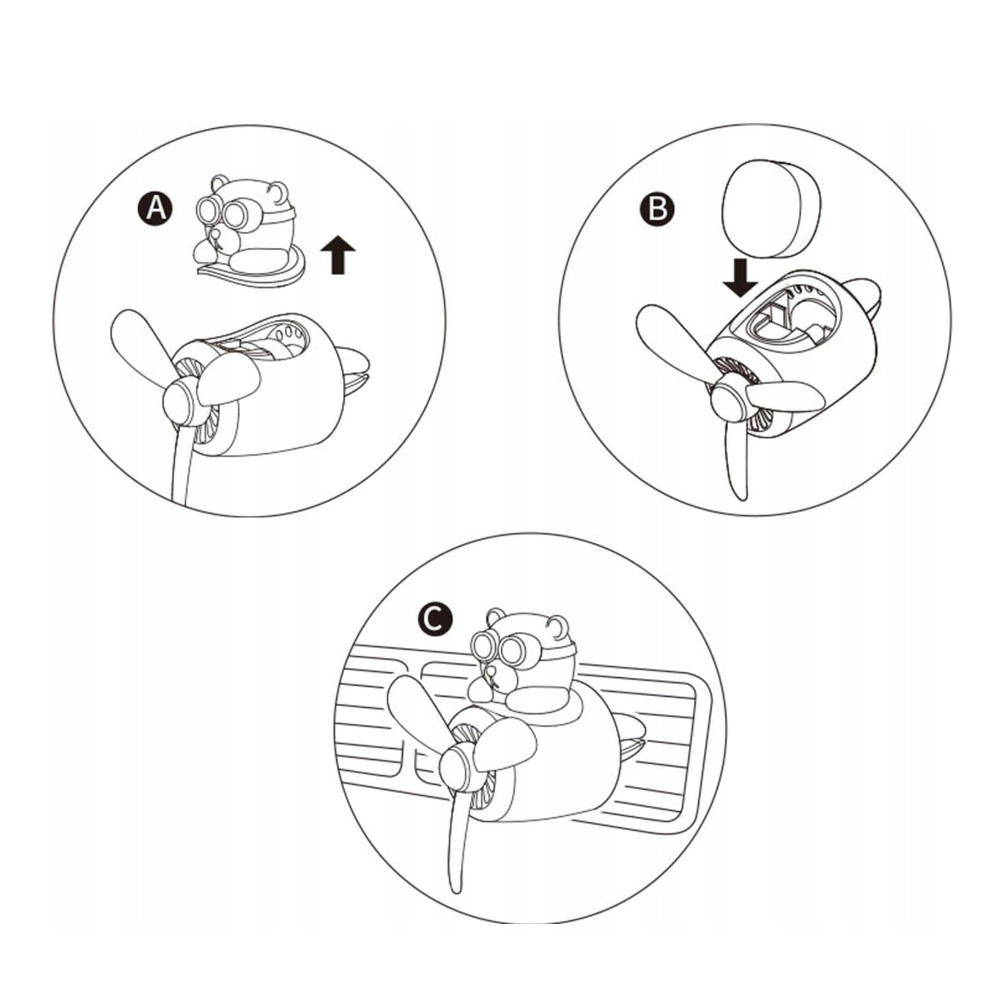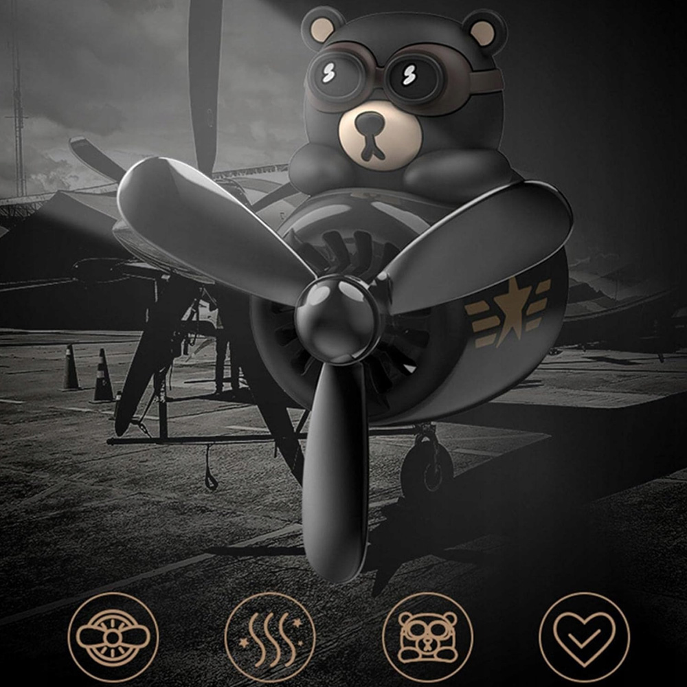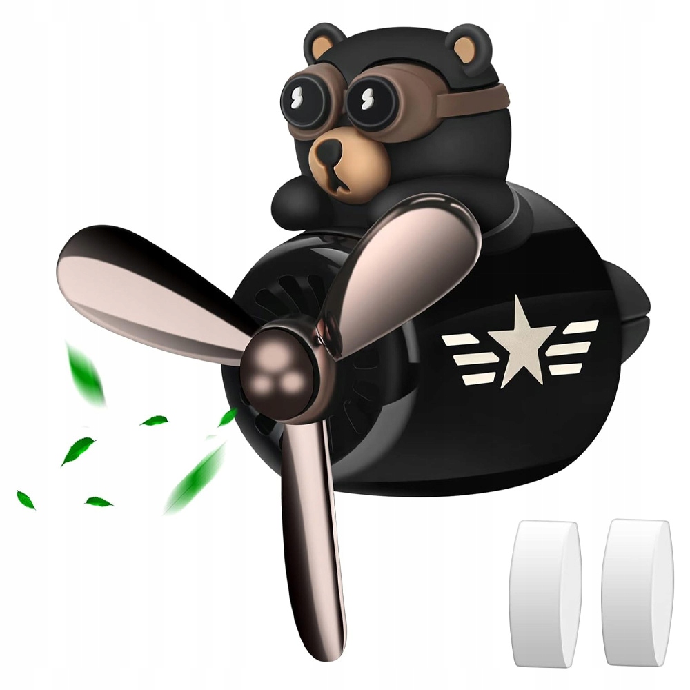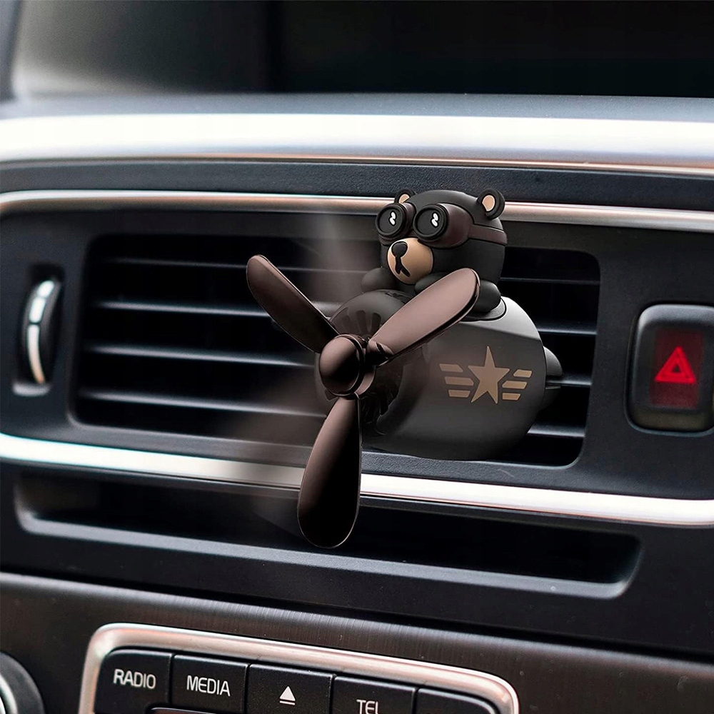 автомобільний освіжувач повітря Bear Pilot, використовується ABS + PP + силіконовий матеріал, м’яка силіконова заглушка не шкодить вашому автомобілю та не турбує вас, коли водіння. Невеликий вітер також може обертатися. Це дозволяє аромату поширюватися в автомобілі через лопаті вентилятора. Його можна обертати одночасно, щоб підвищити красу та інтерес.