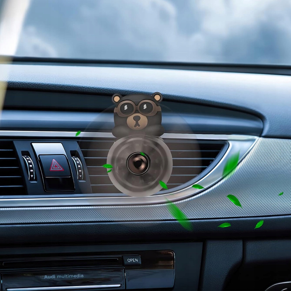 Освіжувач повітря Car Bear, використовуйте ароматизовані подушечки, щоб поширити аромат. Легко замінити, безпечно використовувати, свіжий аромат, довготривалий аромат. Має дезодоруючу функцію. Повітряний отвір приводиться в рух вентилятором, і аромат рівномірно роздувається в усі куточки автомобіля. Поставляється з 2 таблетками аромату (Ocean x 1, cologne x 1), які можна використовувати протягом 2 місяців, і дизайн дуже інноваційний і практичний