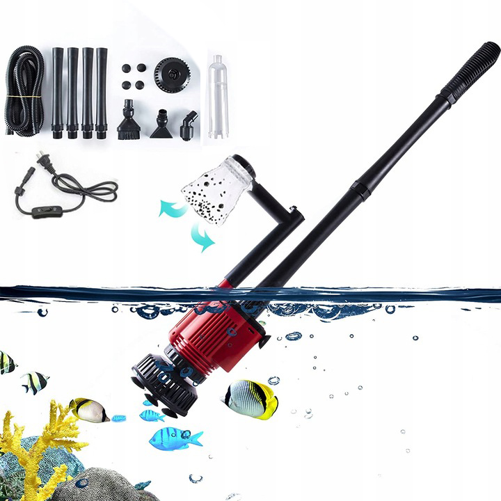 - Пристрій для очищення акваріума з функціями заміни води, очищення піску, очищення залишків риби, фільтр для води, струмінь води та потік води .