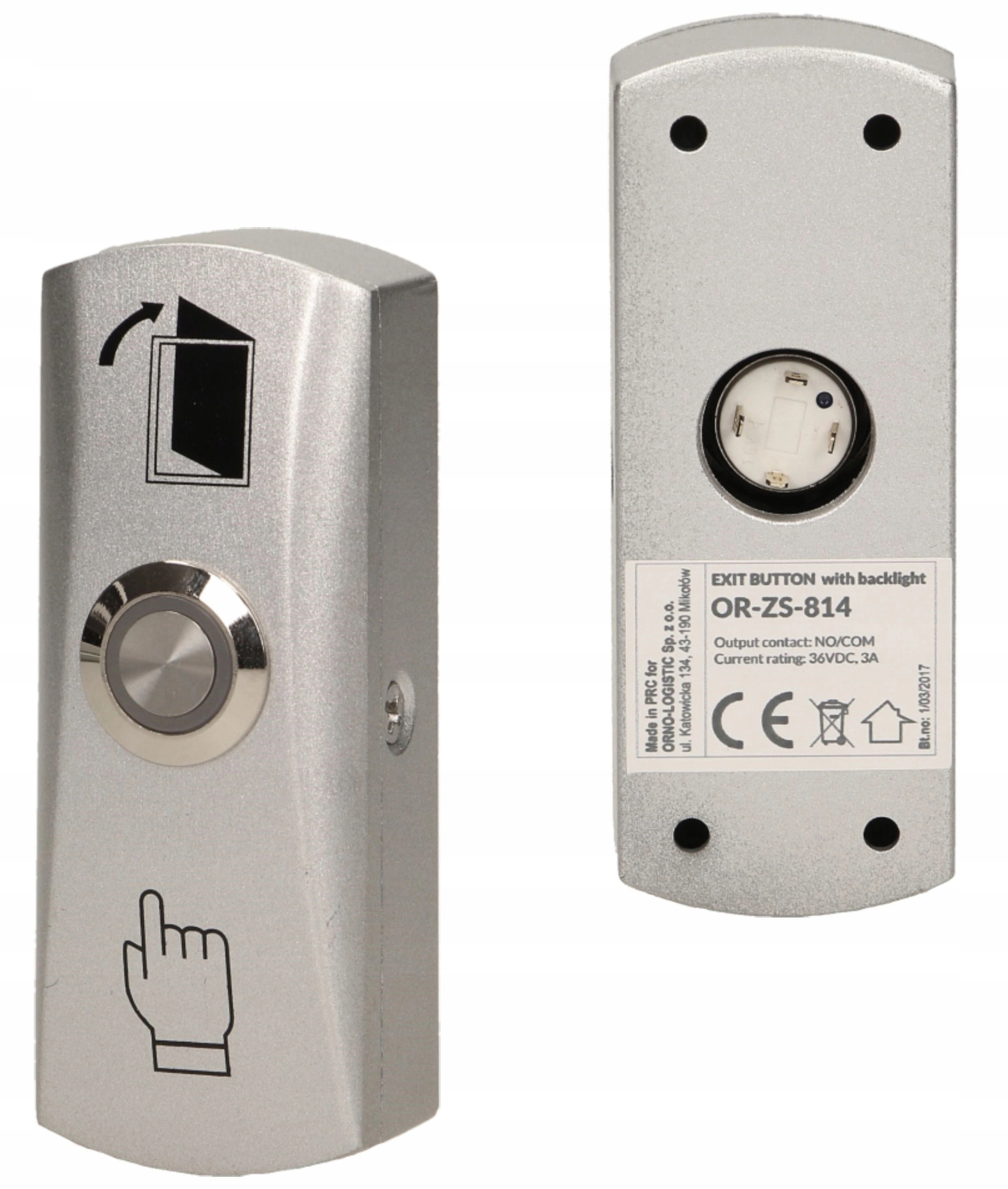 Кнопка виходу зі світлодіодним підсвічуванням, поверхнева срібляста