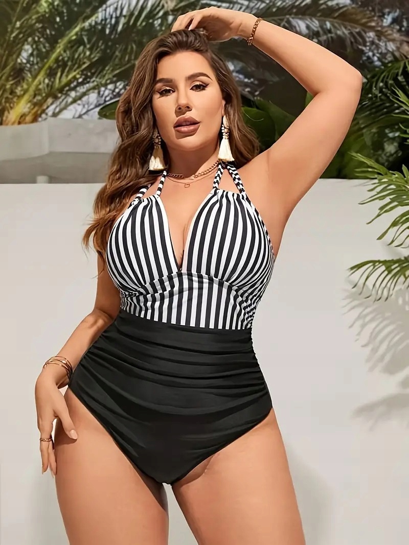 Одночасний купальник плюс розмір смугастого друку 56 (PS21-5)