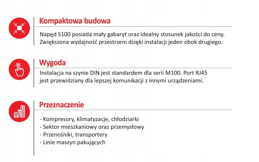 Новий накопичувач серії мікро (M – мікро). Девіз нової серії: «Простота та економія часу». Серія M100 остаточно призначена для заміни популярної серії iC5. Інвертор доступний в однофазному виконанні до 2,2 кВт включно. Інвертор призначений для простих і невимогливих застосувань, таких як приводи вентиляторів, насоси та стрічкові конвеєри. Пристрій був розроблений і вирівняний для потреб вентиляційного ринку. Інвертор має багато особливостей, які відрізняють його від серії iC5: