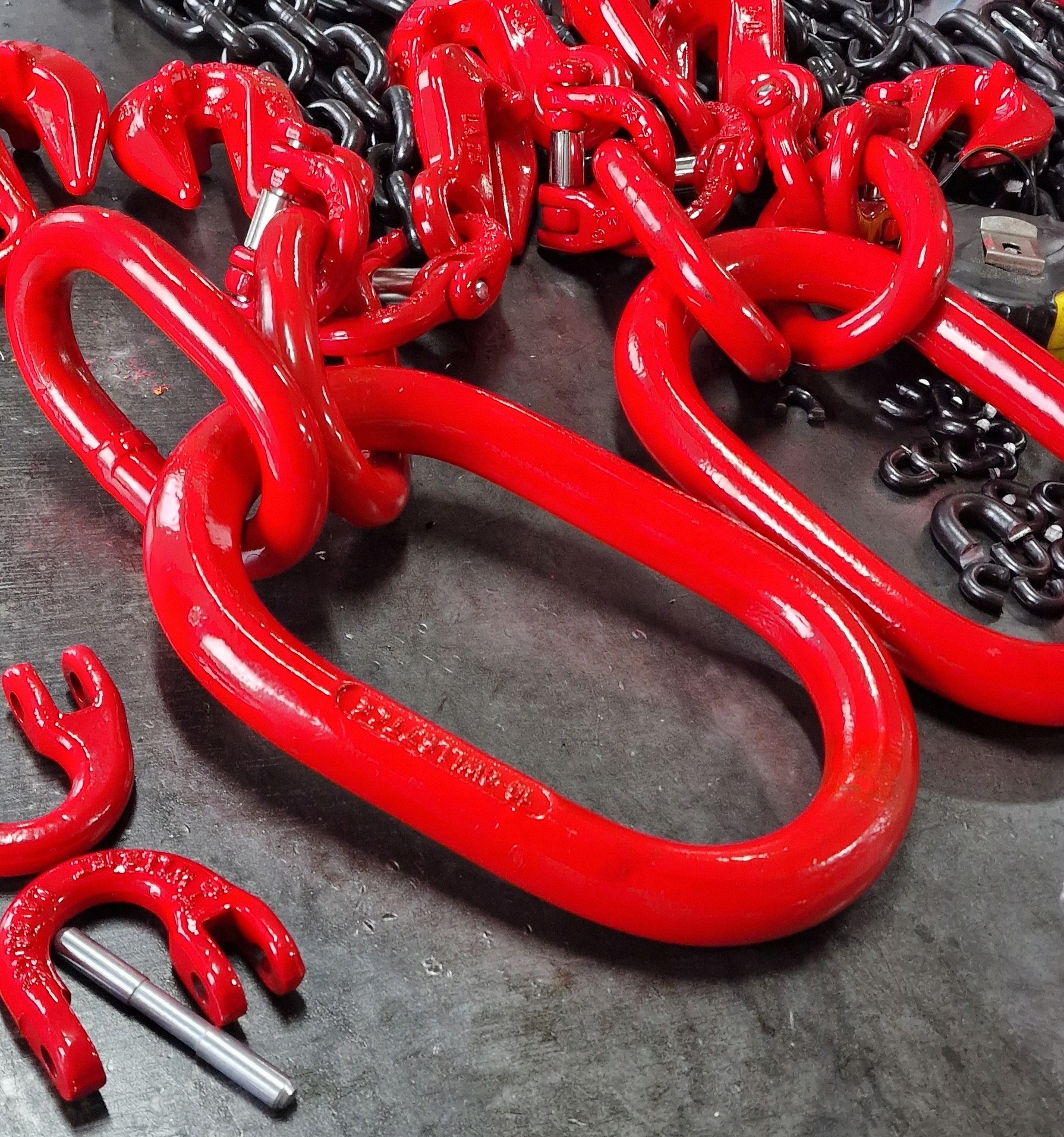 - 1,12 тонни до 12,50 тонни: Ці значення робочого навантаження типові для строп класу 8 (G8). На практиці вантажопідйомність стропа залежить від діаметра ланцюга і кута підйому (якщо використовуються інші троси). Ось кілька прикладів допустимих навантажень для різних діаметрів ланцюга: